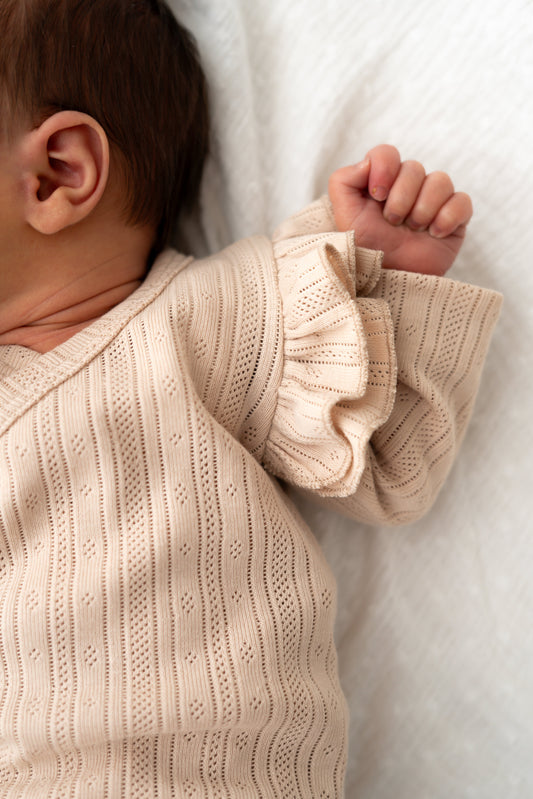 Prematuur overslagshirtje ruffle zachtroze (rib)