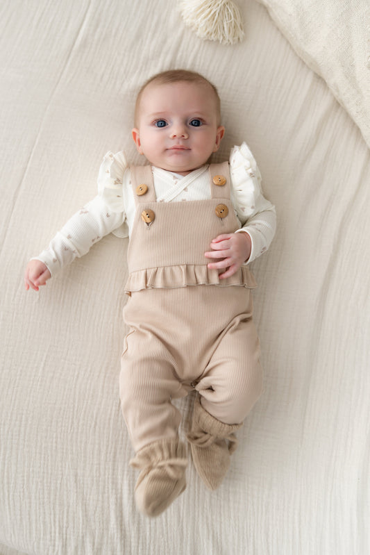 Tuinbroekje ruffle Beige (rib)