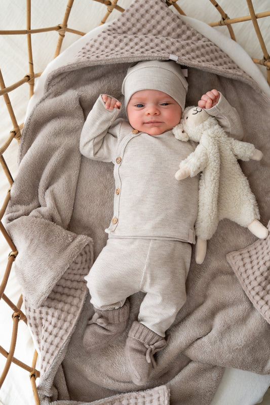 Newborn set Naturel (rib) broek + muts