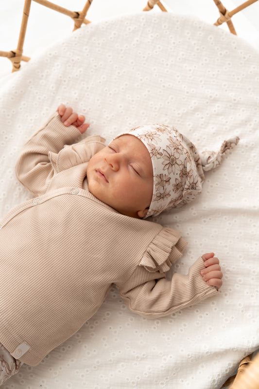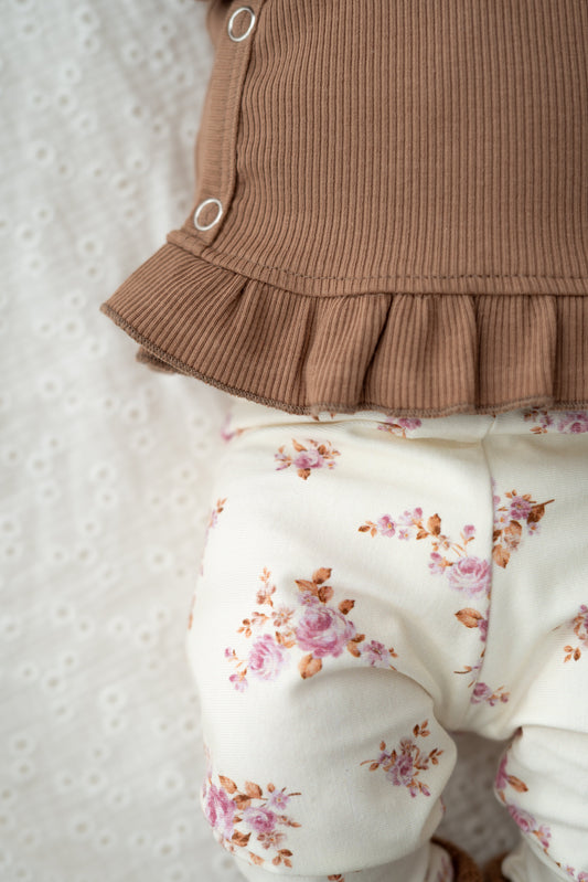 Overslagshirtje dubble ruffle Bloemetjes blauw (rib)