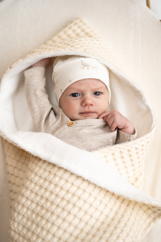 Newborn set Mini bloemen perzik (rib) broek + muts