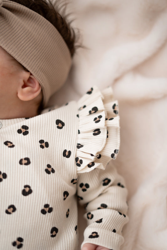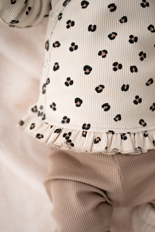 Boxpakje Dubbele ruffle Panterprint zand (rib)