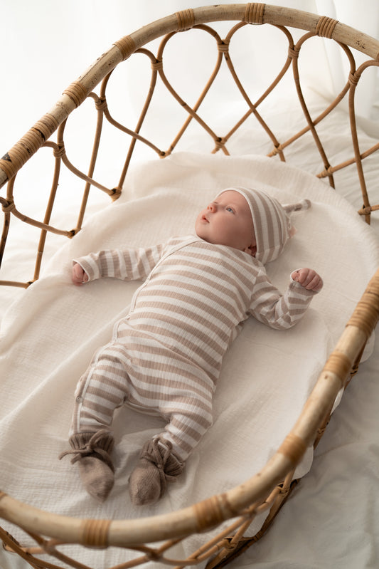 Mutsje Streepjes beige (brede rib)