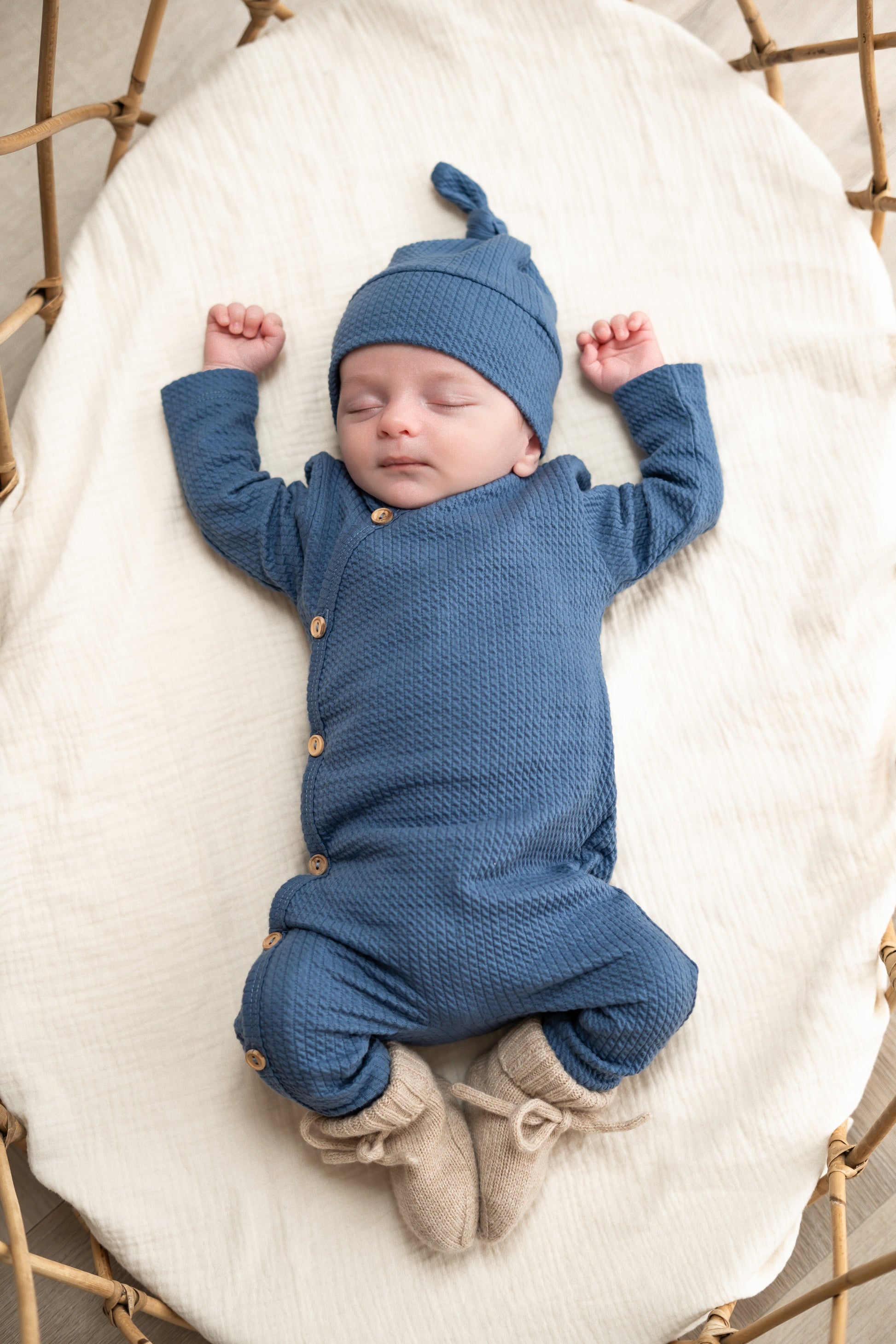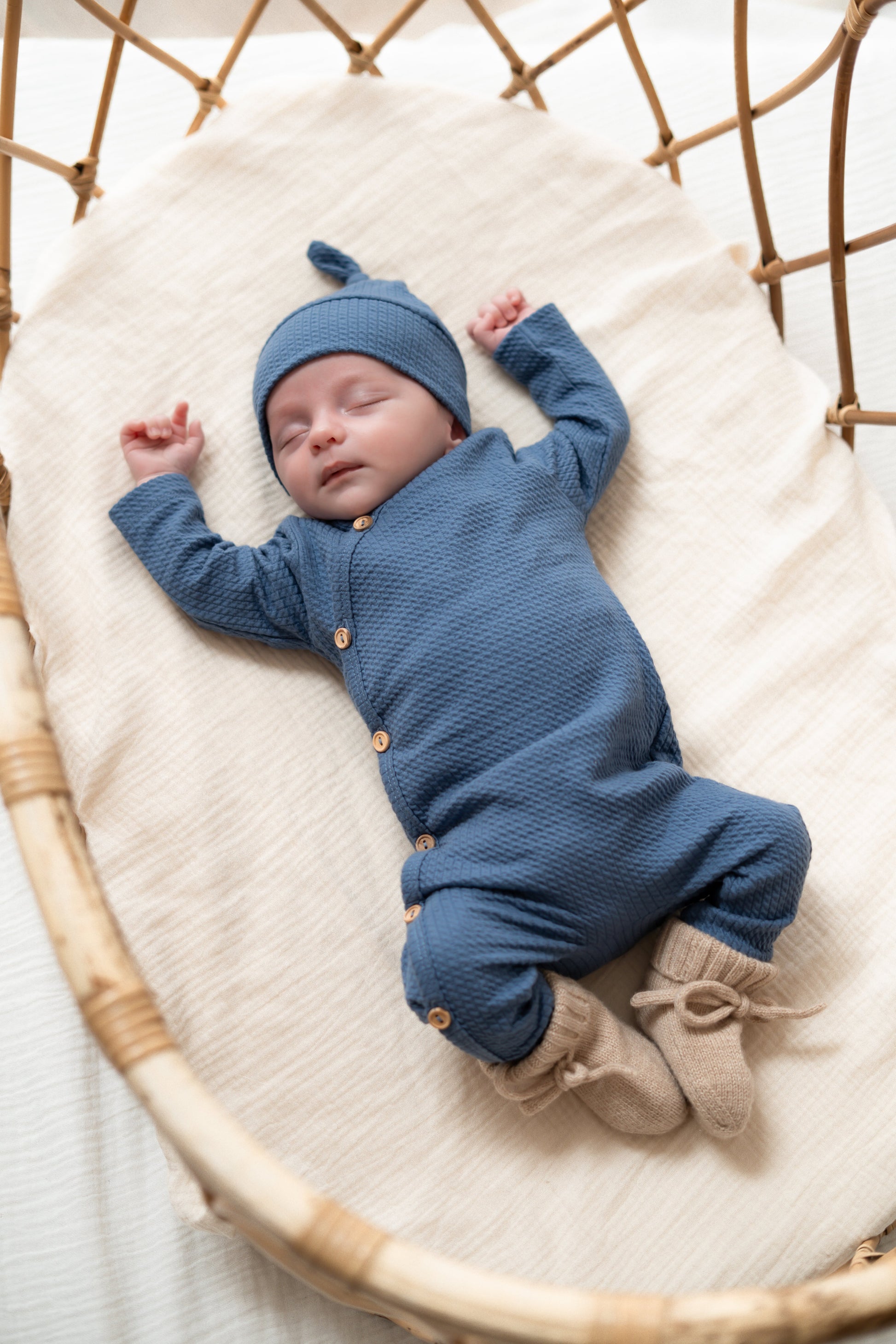 Met het boxpakje Buttons denim blauw in cable stof kies je voor comfort, kwaliteit en een tijdloos design – een onmisbare must-have in elke babyuitzet.