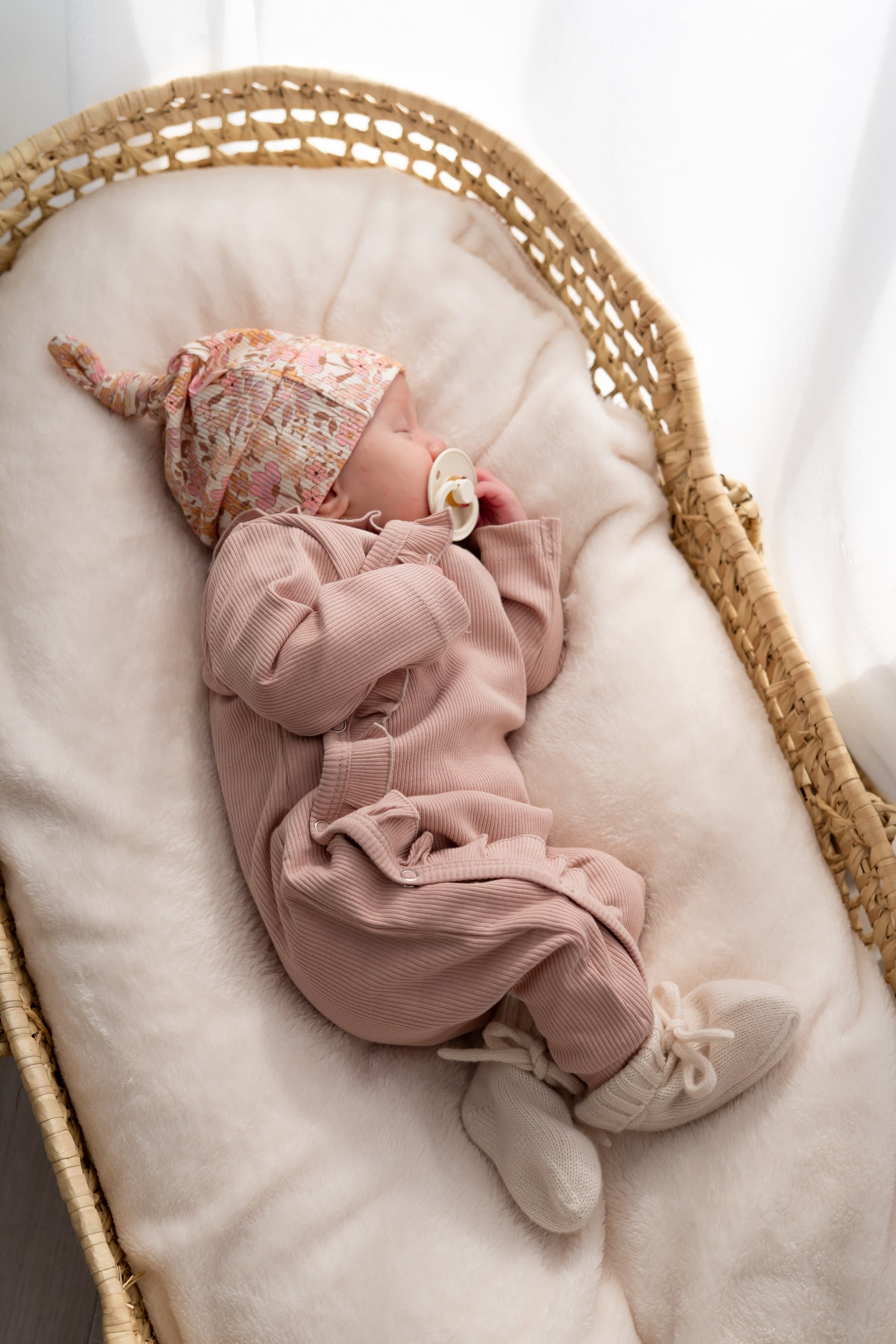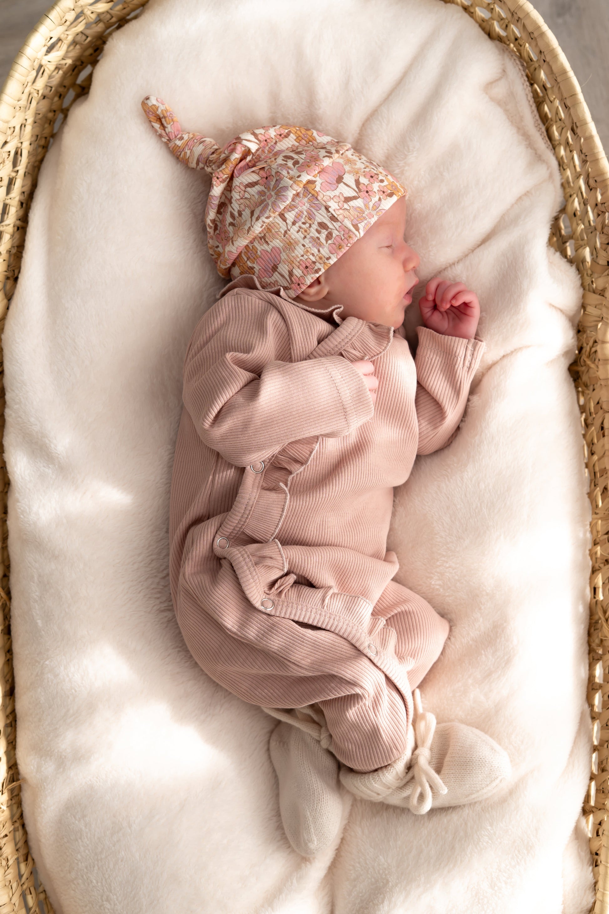 - Vrijheid in beweging: De rekbare stof zorgt voor een comfortabele pasvorm, zodat je baby vrij kan bewegen, slapen en spelen.