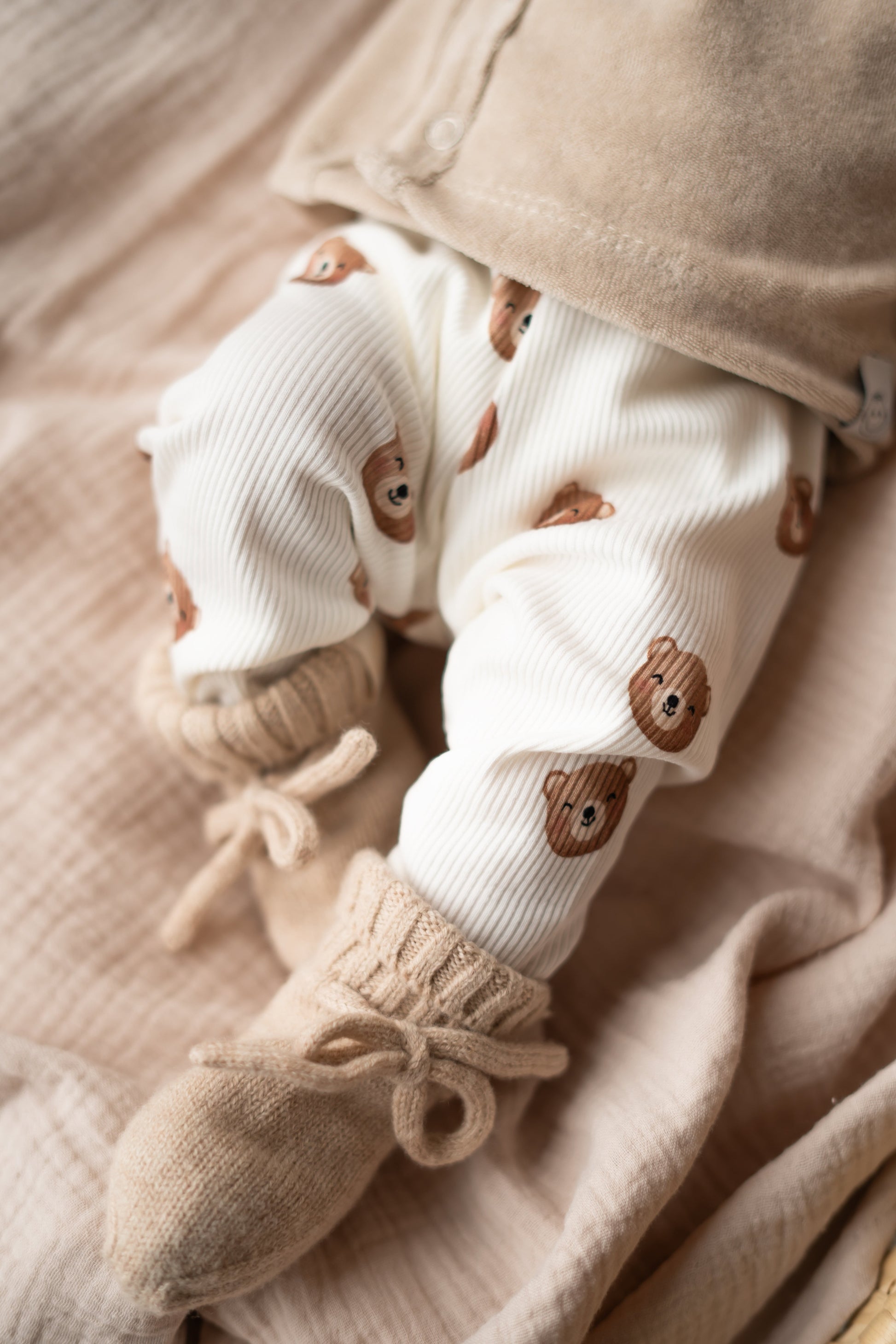 Onze babybroekjes met zachte ribstof en beertjesprint zijn een must-have voor je kleintje! Ze combineren comfort, stijl en functionaliteit. Dankzij het speciale babyelastiek en de rekbare stof zit het broekje perfect, zonder te knellen. Ideaal voor spelen, slapen en bewegen. Combineer eenvoudig met andere items uit onze collectie!