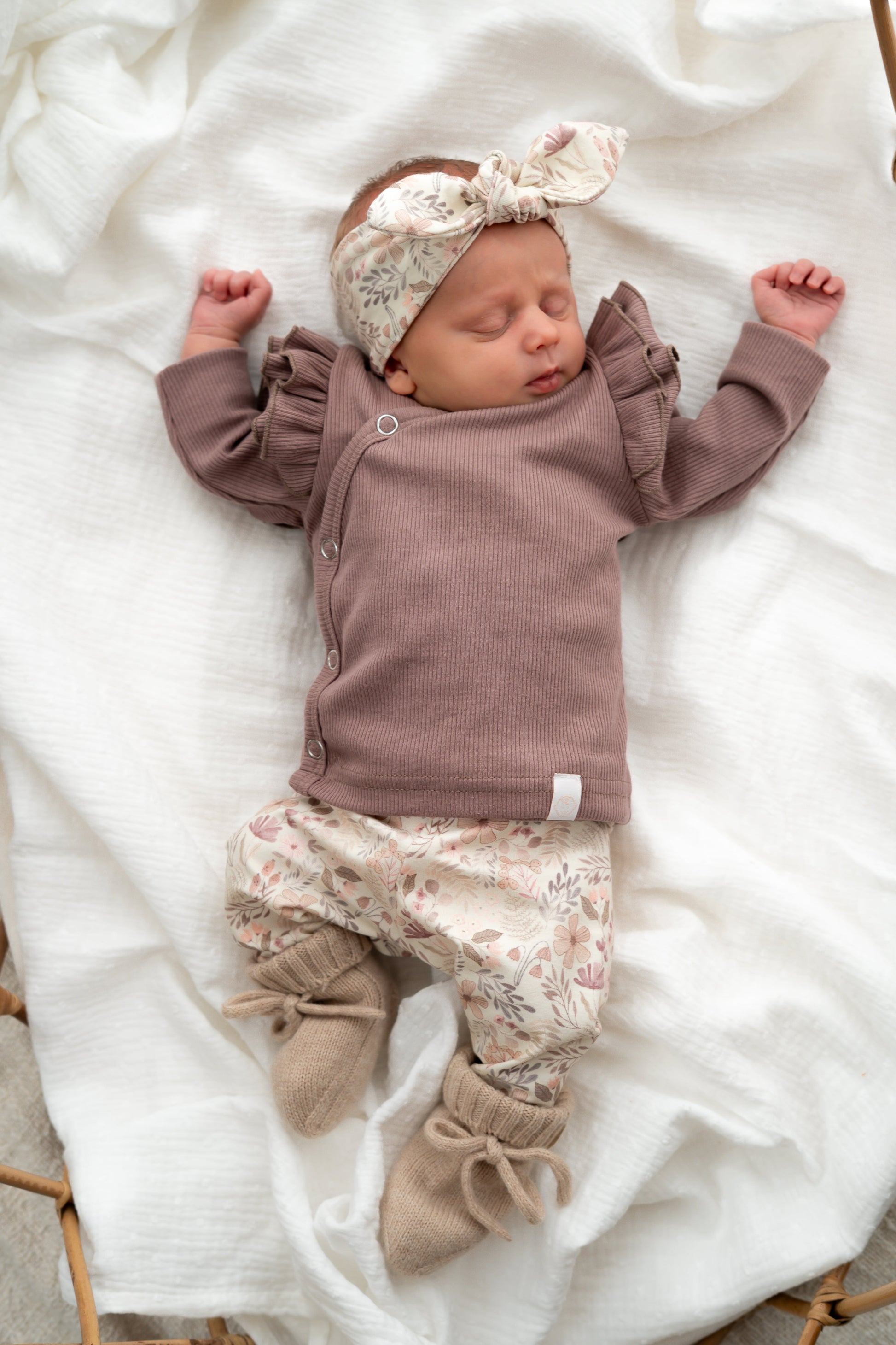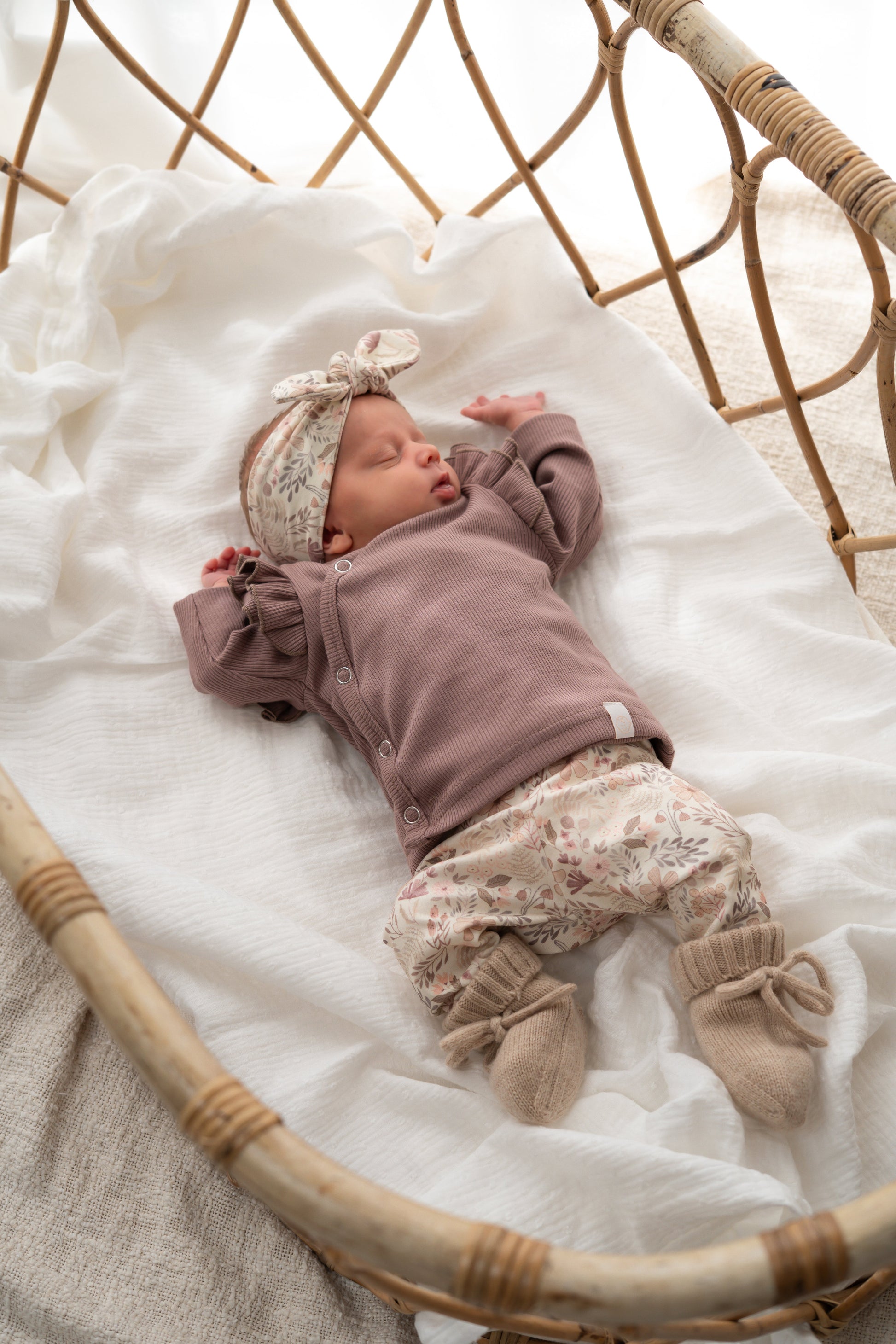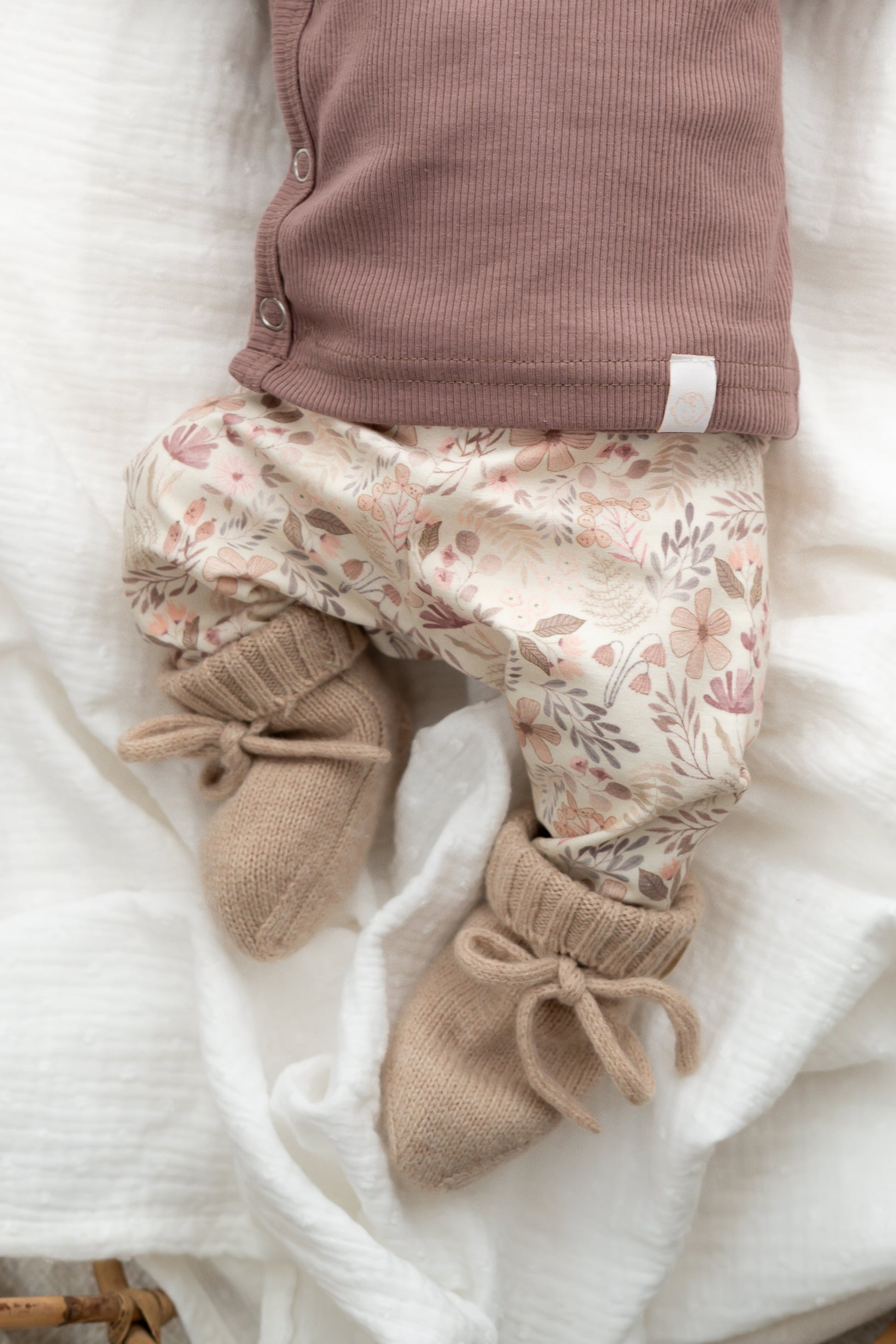 Ons babybroekje Blossom biedt ultiem comfort dankzij de zachte, rekbare stof en het soepele elastiek in de taille. De langere pasvorm zorgt ervoor dat het broekje extra lang meegaat. De subtiele beige en roze bloemenprint maakt het een stijlvolle keuze en eenvoudig te combineren met andere items uit onze collectie.