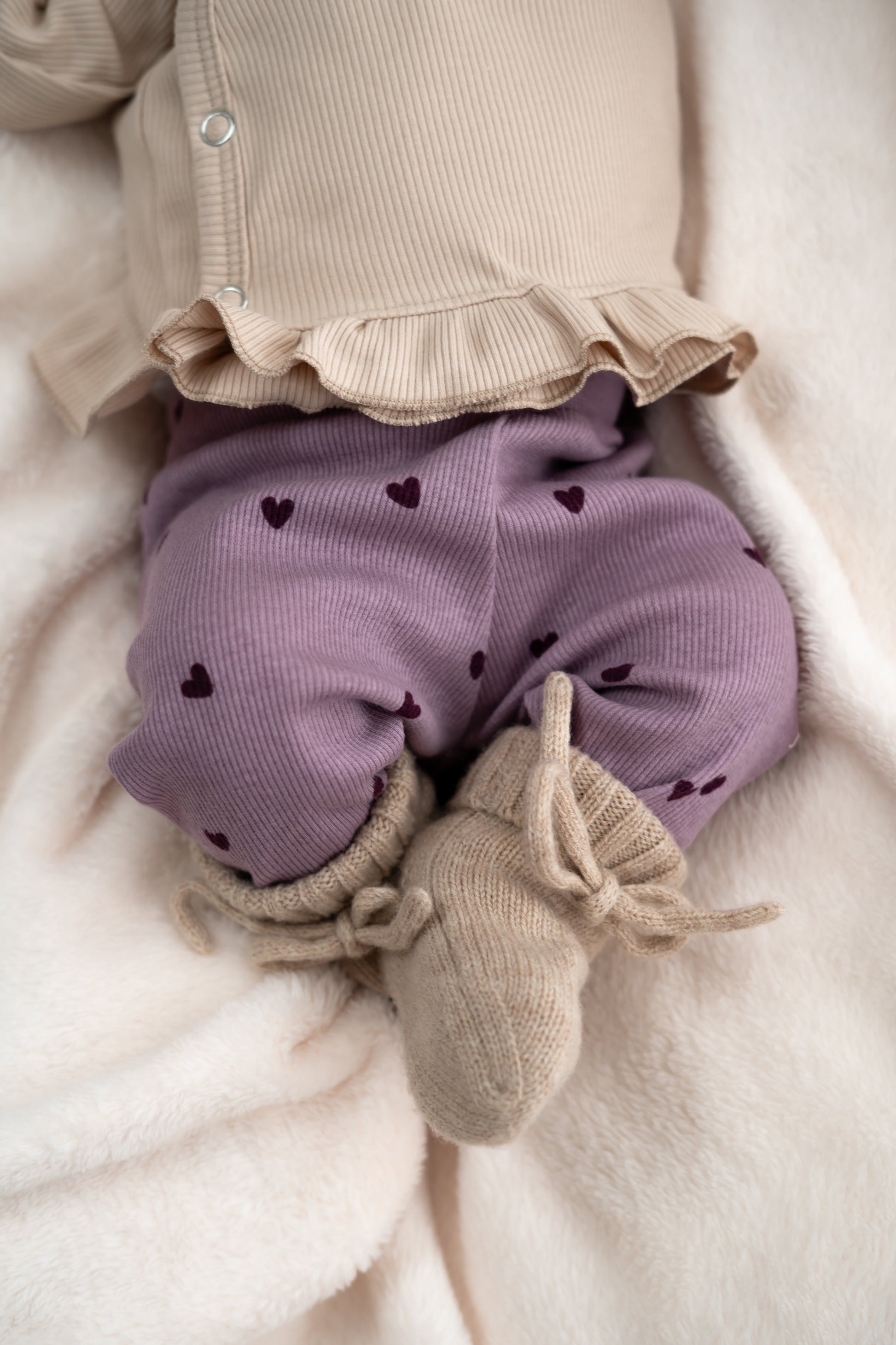 Lief & comfortabel: babybroekje hartjes paars rib