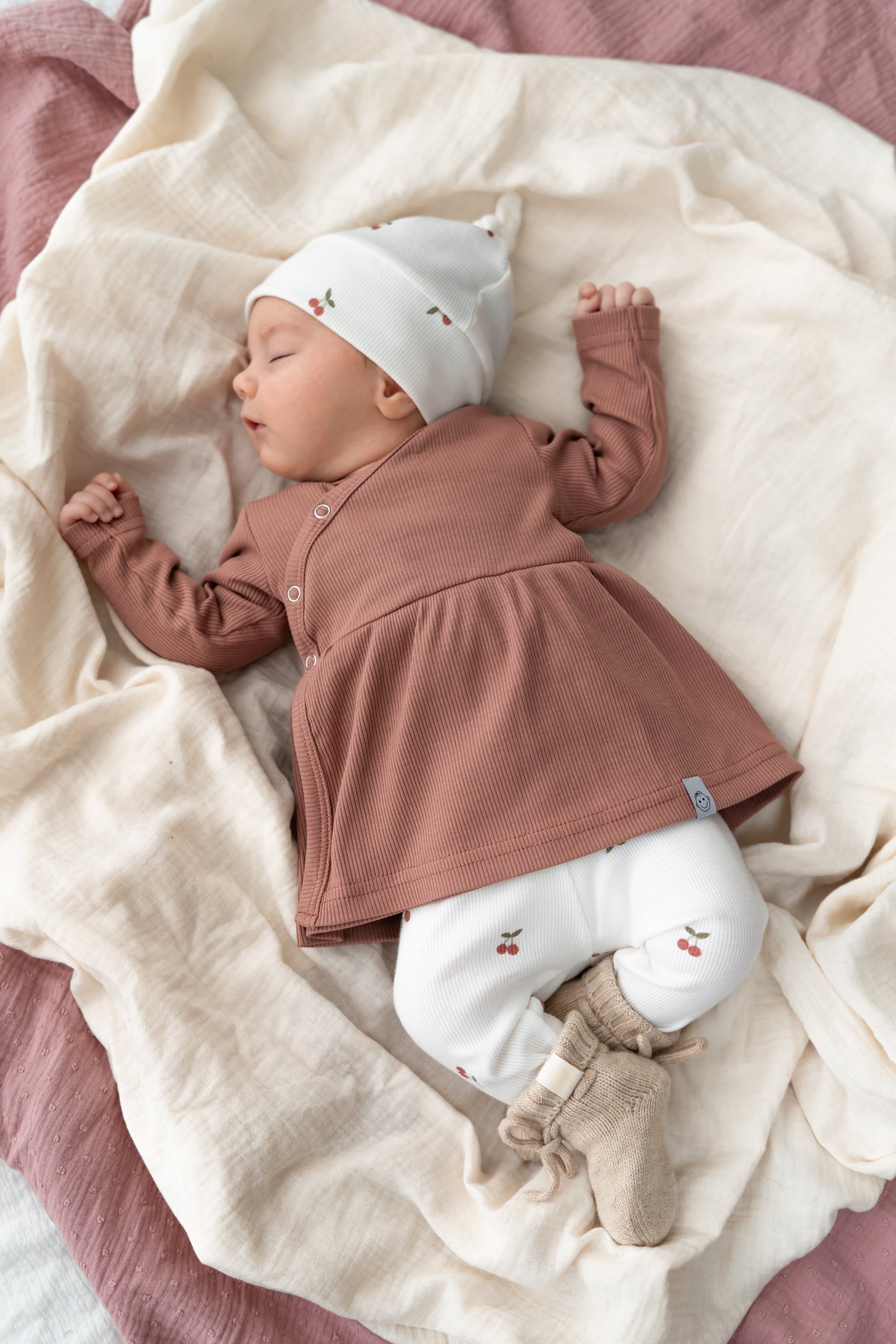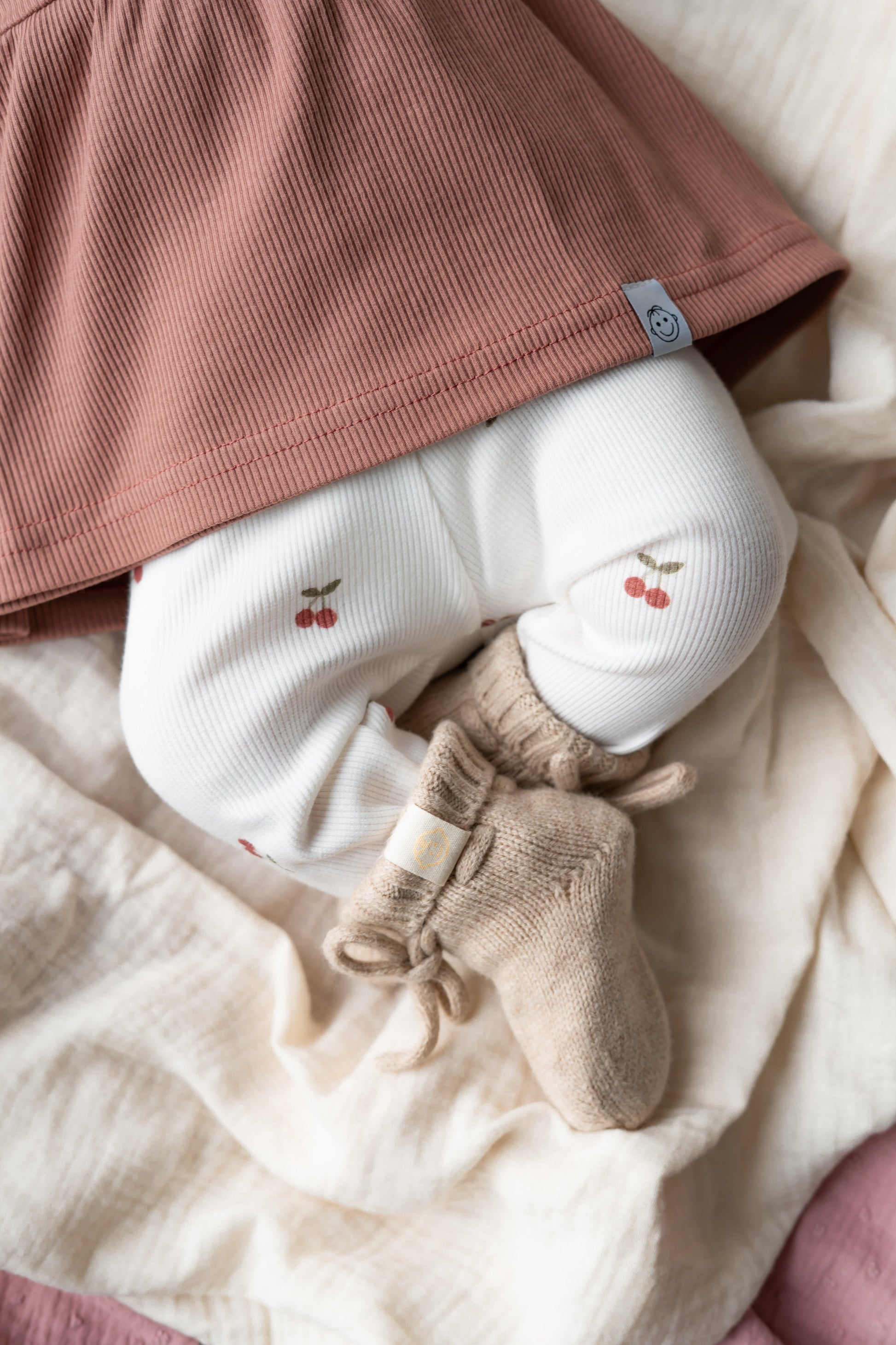 Speels en zacht: Babybroekje met kersenprint op ecru ribstof