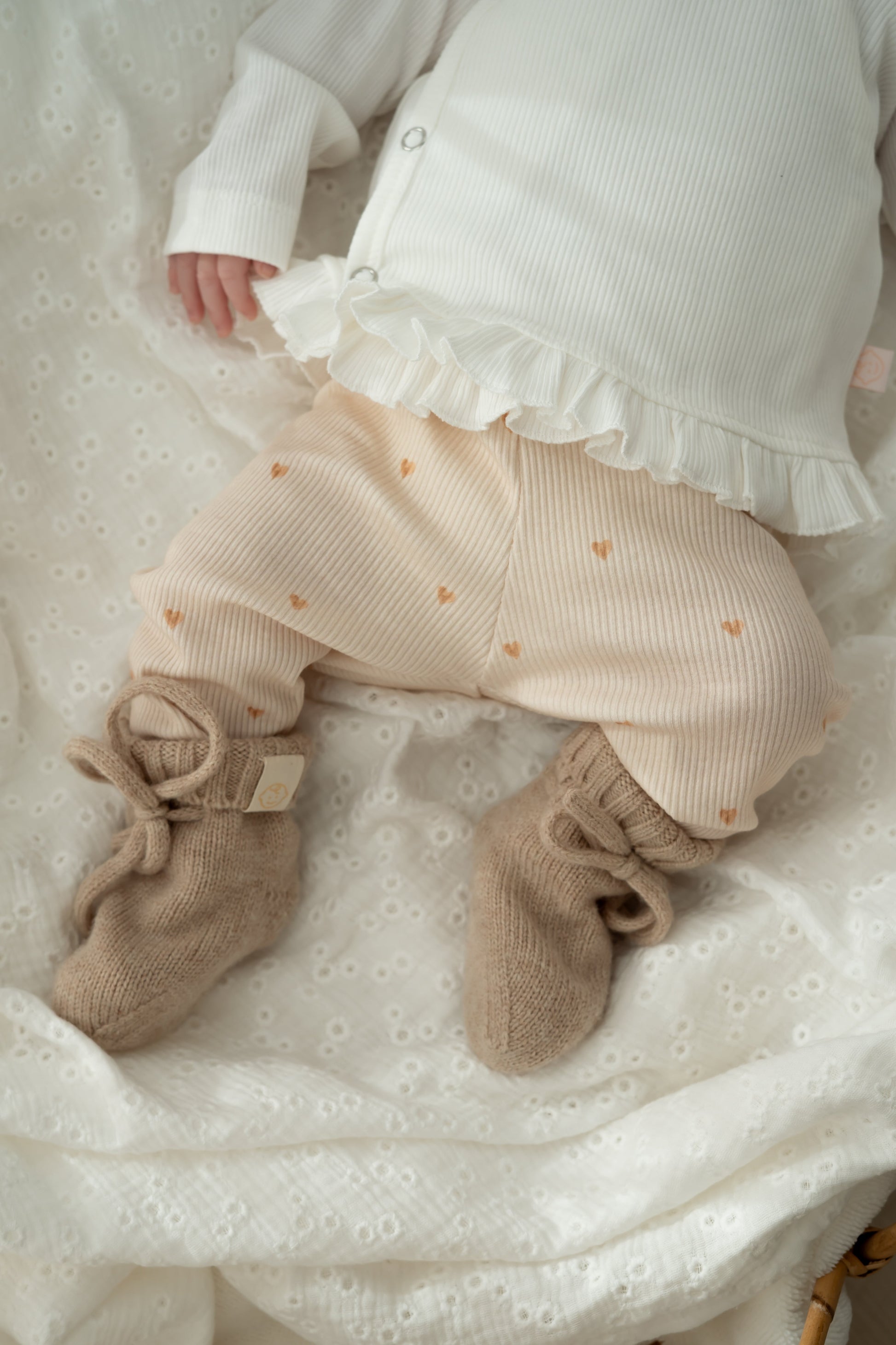 Babybroekje Mini Hartjes Vanille Rib – Zacht ribbroekje vol liefde