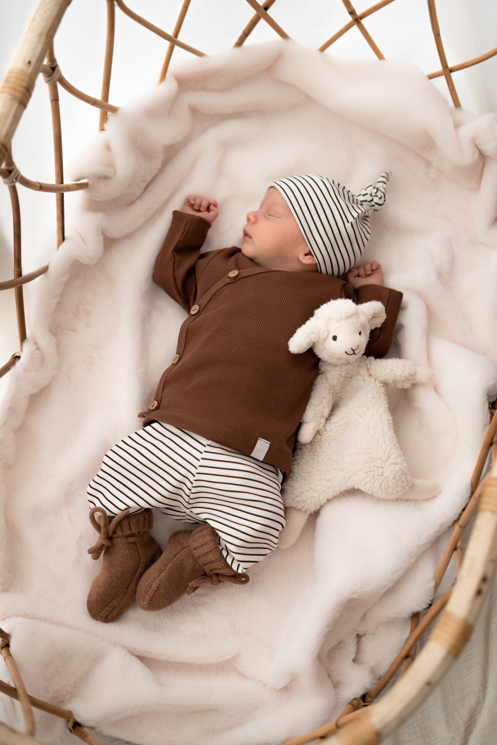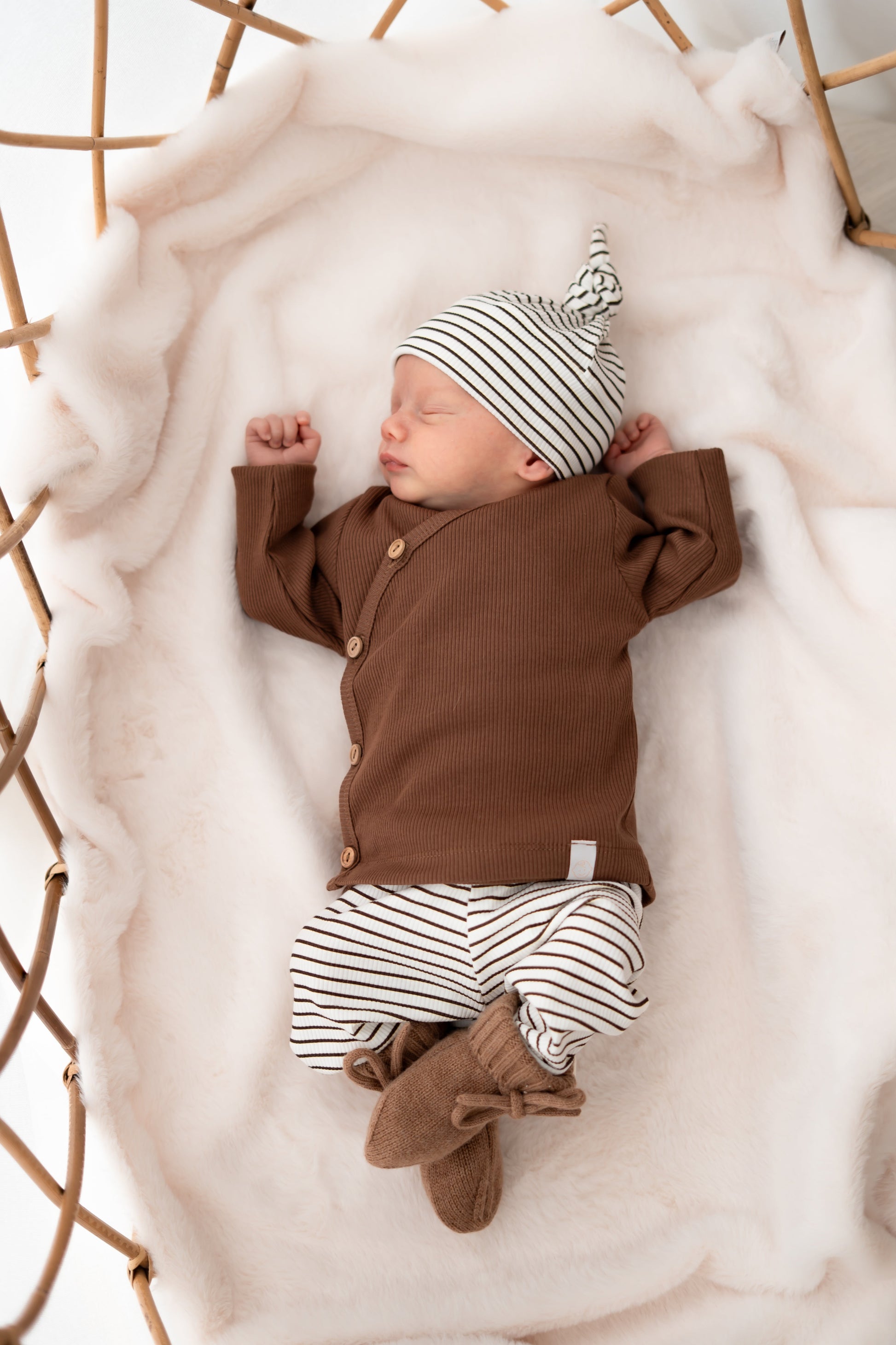 Of je nu kiest voor een casual outfit of iets chiquer: dit babybroekje in bruine streepjes past overal bij. Voeg slofjes of een bijpassend mutsje toe voor een lieve, afgewerkte look.