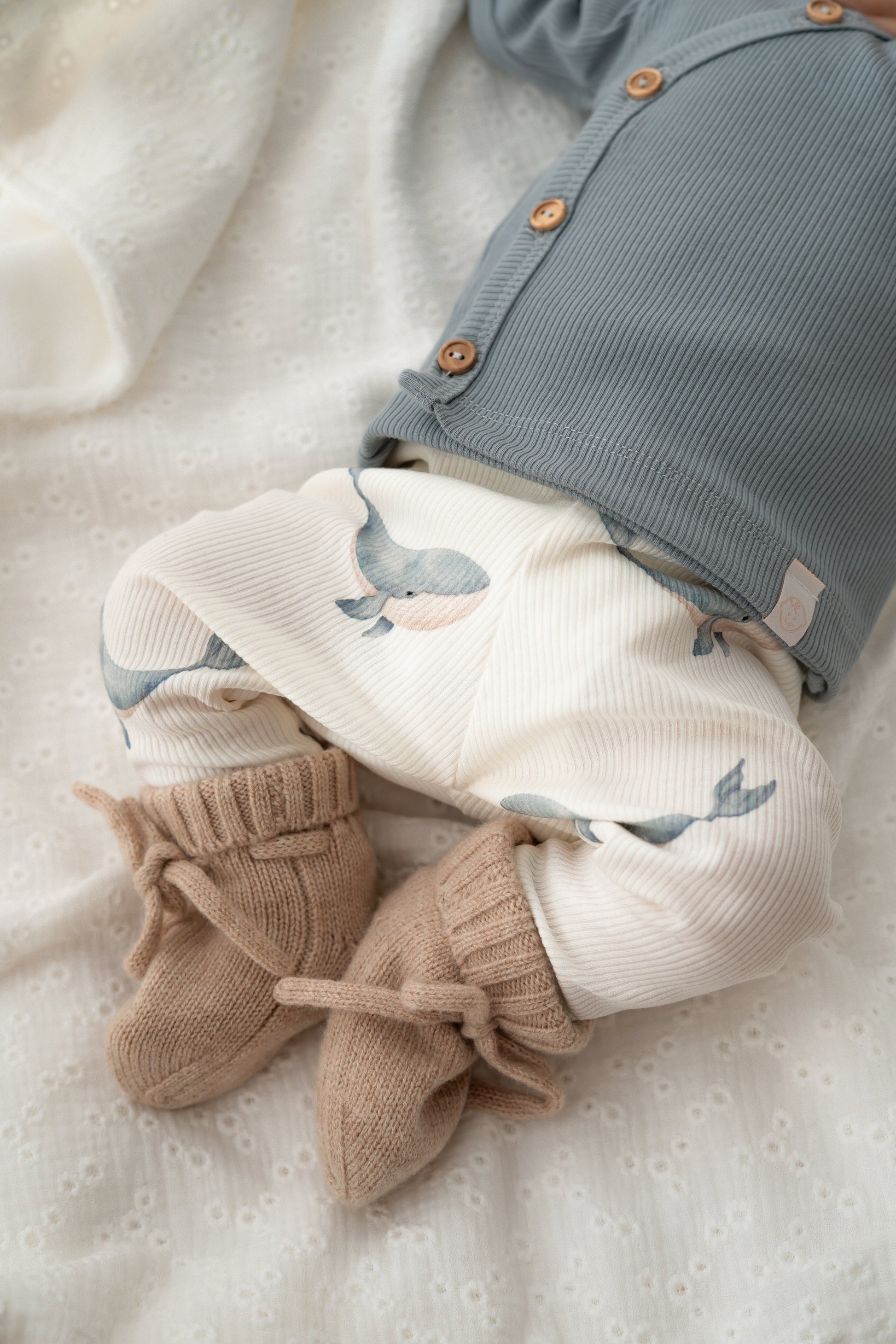 Het babybroekje Walvissen rib combineert zachtheid, comfort en een speels design – een praktische én schattige keuze voor je kleintje.