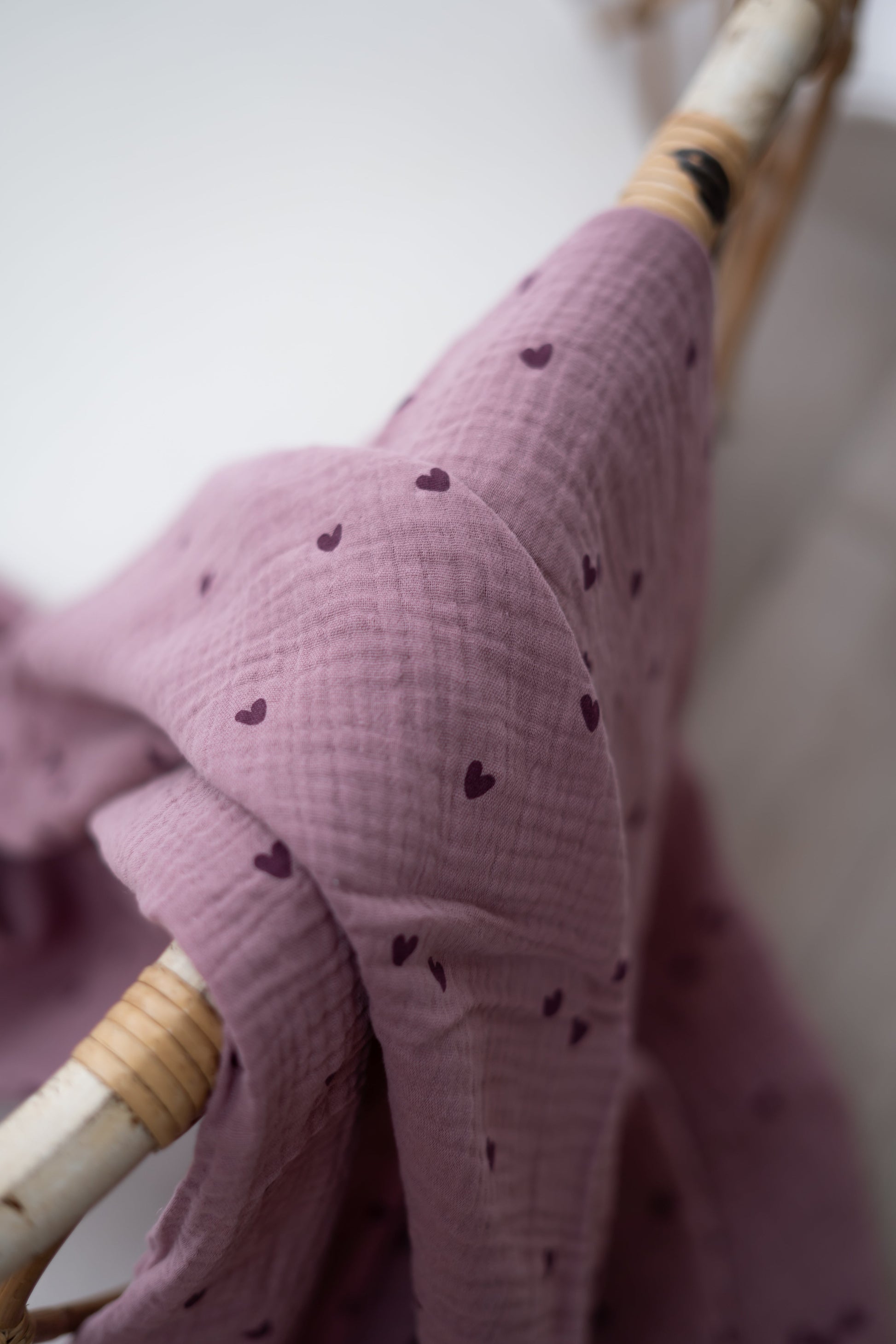 Hydrofiele Doek XL Hartjes Mauve – Zacht, Lief en Superpraktisch