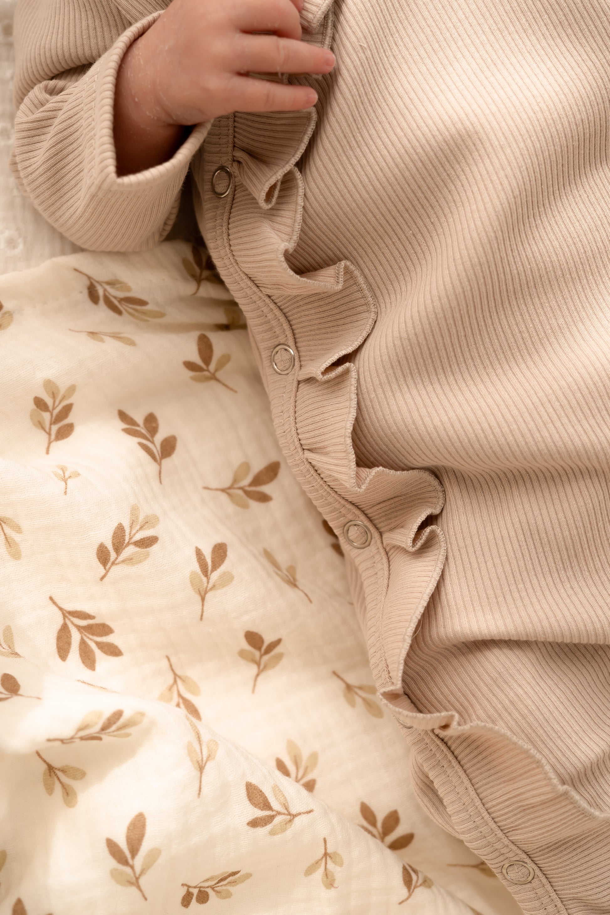 De subtiele takjesprint en zachte crème tint maken deze hydrofiele doek XL tot een charmante toevoeging aan je babyuitzet. Gebruik hem als swaddle, als deken of gewoon als zachte steun bij elk moment van de dag.