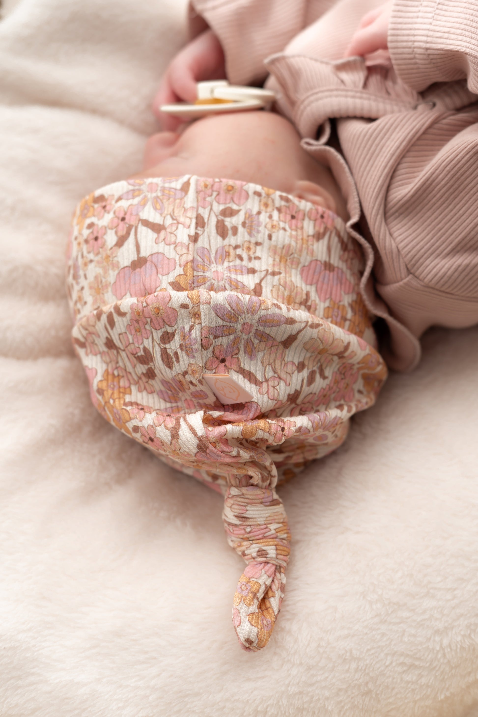 Babymutsje Pastel Weidebloem – Zacht, verstelbaar & fleurig voor newborn meisjes