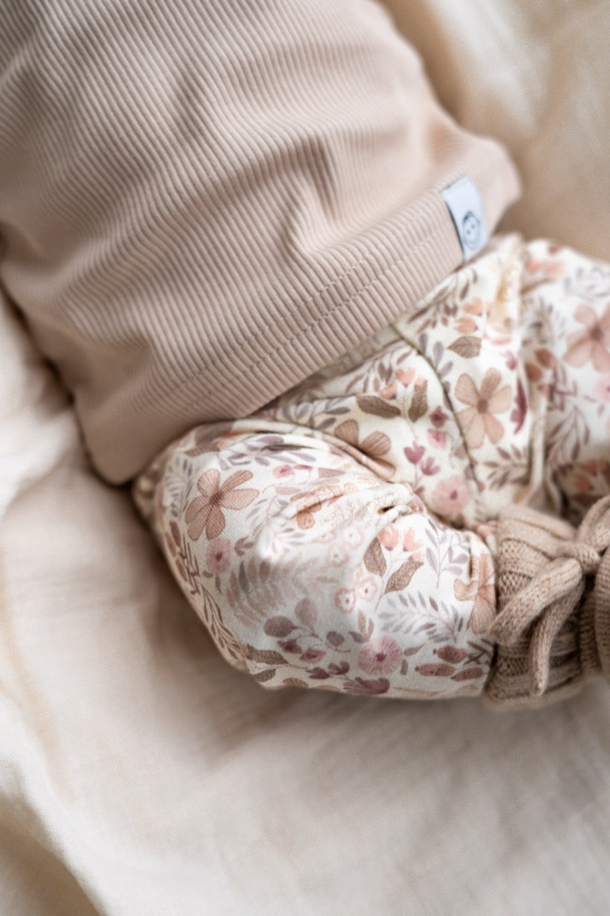 Laat je pasgeboren baby stralen in ons prachtige newborn setje Blossom. Dit lieve en stijlvolle setje is vervaardigd uit een heerlijk rekbare katoenstof zonder ribstructuur, waardoor het zijdezacht aanvoelt op de tere babyhuid. De elegante bloemenprint in zachte beige- en rozetinten geeft het pakje een romantische en verfijnde uitstraling, perfect voor de allereerste momenten van je kleintje.