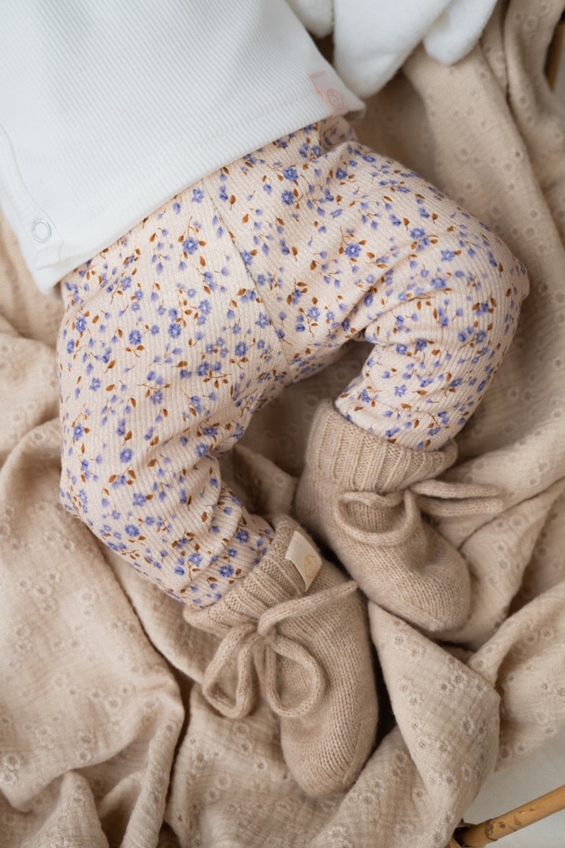 Newborn set Pastel blauwe mini bloemen (rib) broek + muts
