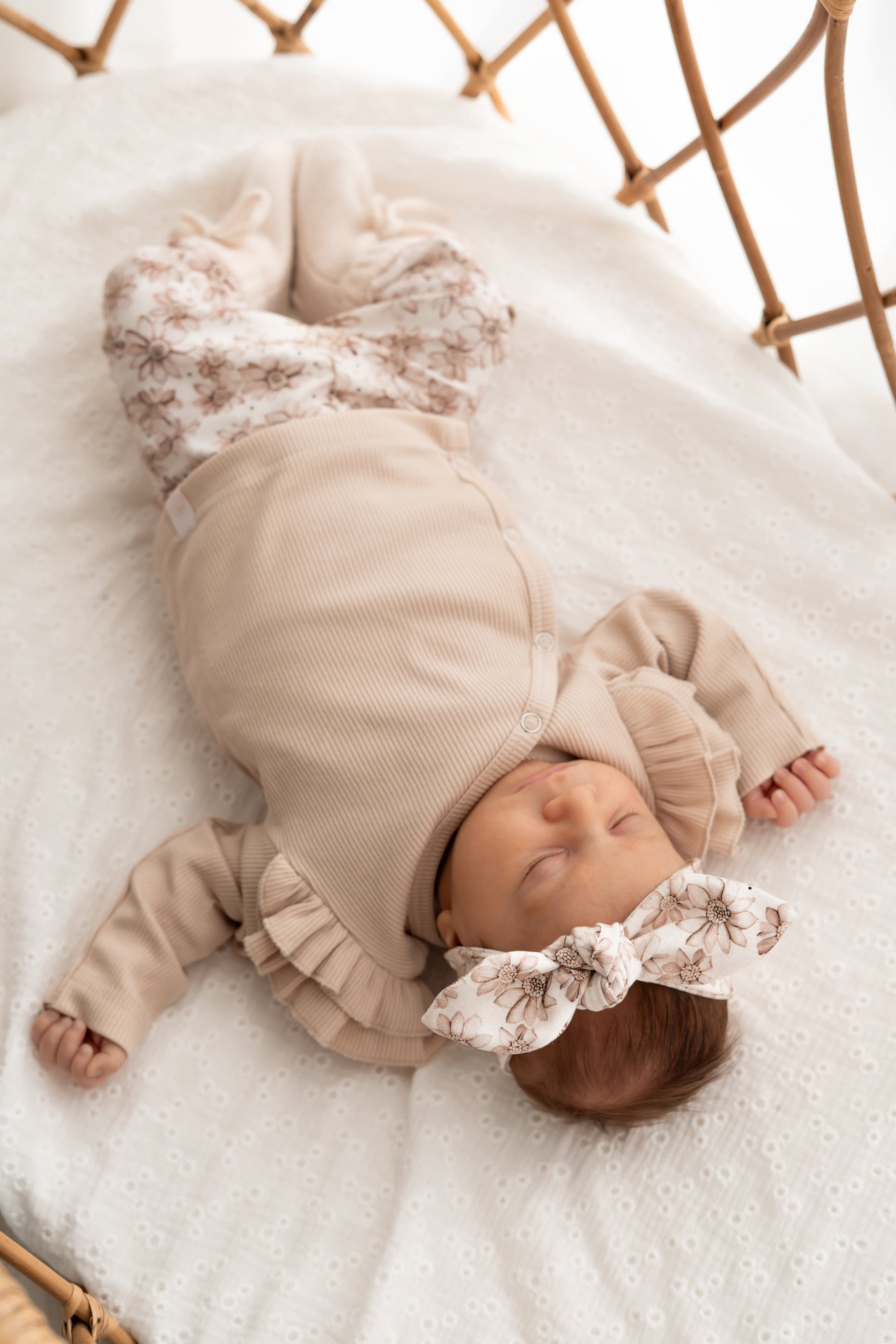 • Veelzijdig te combineren: Past mooi bij een beige babybroekje, mutsje of haarband.