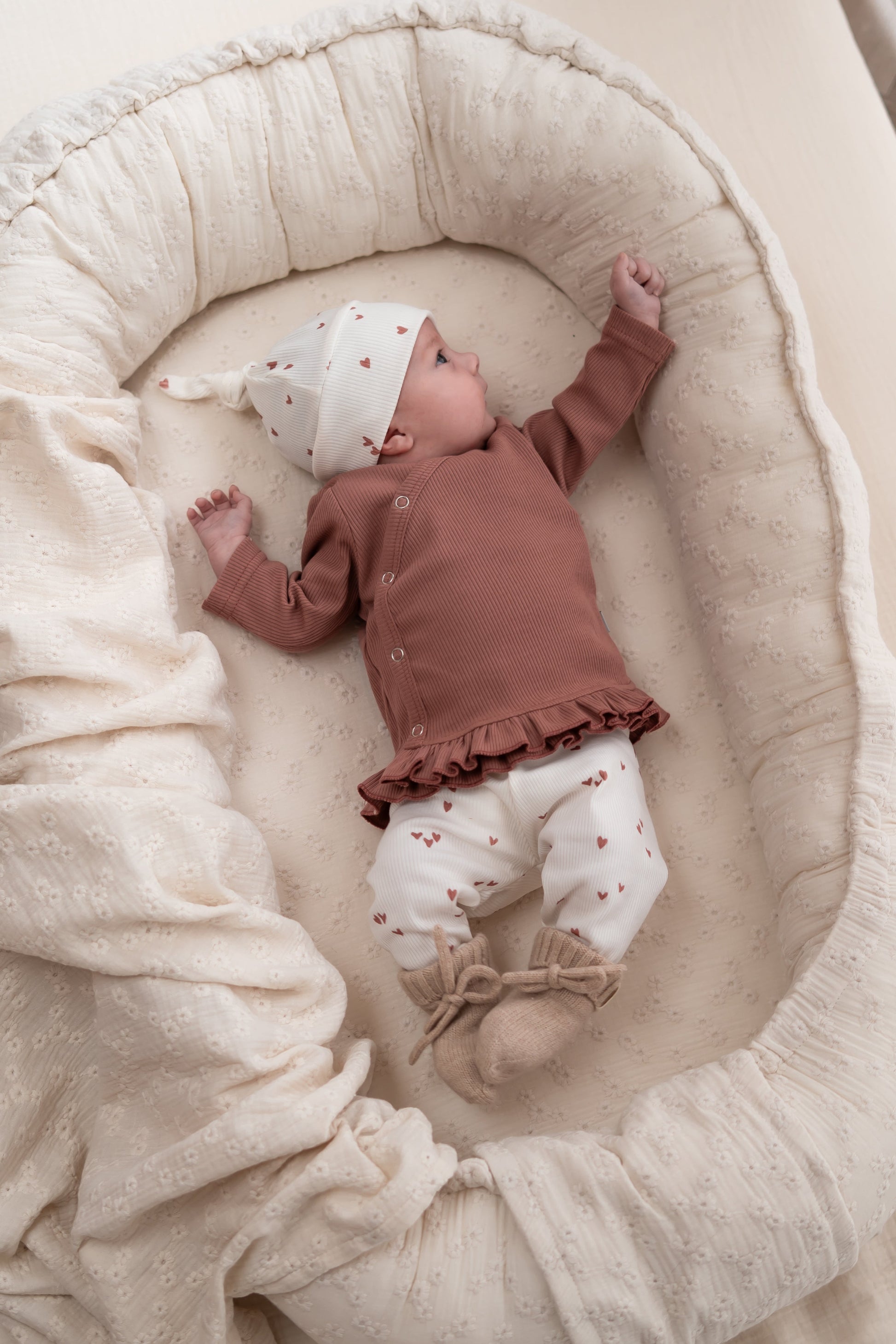 - Zacht voor de huid: Gemaakt van ademende katoenstoffen die zacht aanvoelen, perfect voor de gevoelige huid van je baby en om irritaties te voorkomen.