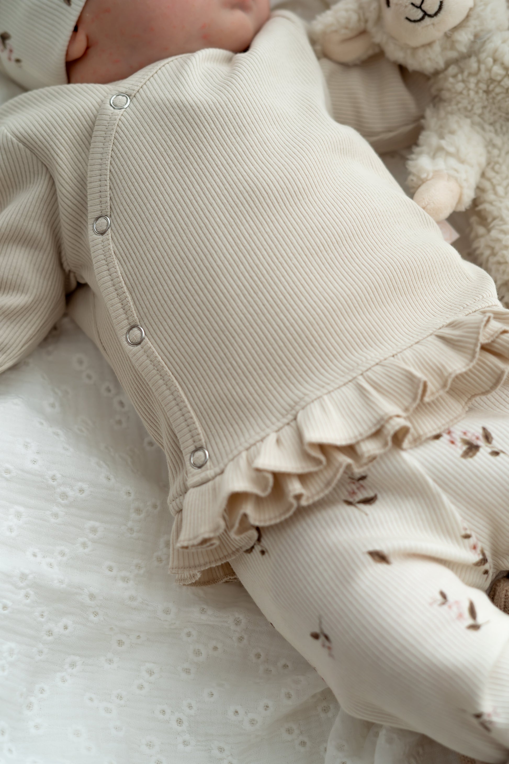 Overslagshirtje ruffle Zand (rib)